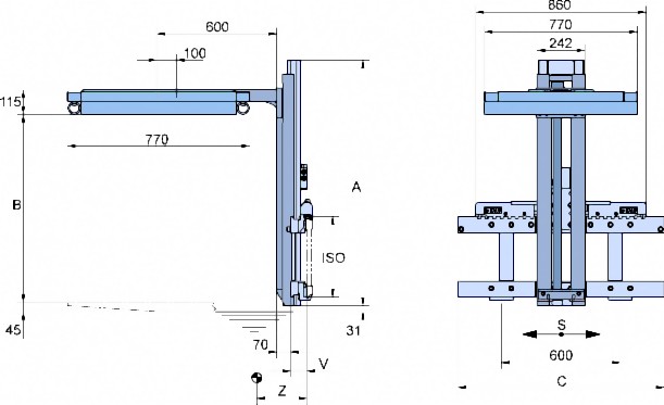 forklift trucks. The sideshifter allows lateral shift of the load,