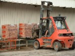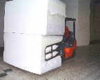 The Block Clamp grips the packets of blocks / bricks form the side and